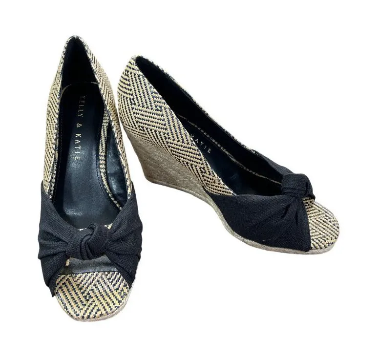 A stylish and versatile pair of peep-toe wedges featuring a herringbone pattern and bow accents. Perfectly suited for both casual and semi-formal settings. This is a beautiful pair in new unused condition and no defects notedd at all. I ship really fast. SKU 8582 • Herringbone pattern on fabric upper • Peep-toe design with bow accents • Espadrille-style wedge heel • Durable rubber outsole • Approx. 3.5-inch wedge height Light wear on soles, no visible flaws elsewhere. Heel height 3" Features: • casual formal wear Size: Womens 6M Condition: Pre-Owned Like New No defects noted. This item has been cleaned, sanitized and deodorized. Although we clean our items additional cleaning may be needed such as spot treatments, etc.