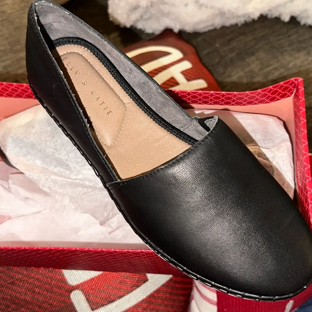 Questions? Leave a comment below! Used once Freshen up your ensemble with the Nile slip-on from Kelly & Katie. This silhouette is fashioned with a soft suede or smooth leather and a cushioned footbed for cloud-like steps! Leather or suede upper Slip-on Round toe Fabric lining Cushioned footbed 1" molded midsole Synthetic sole Imported