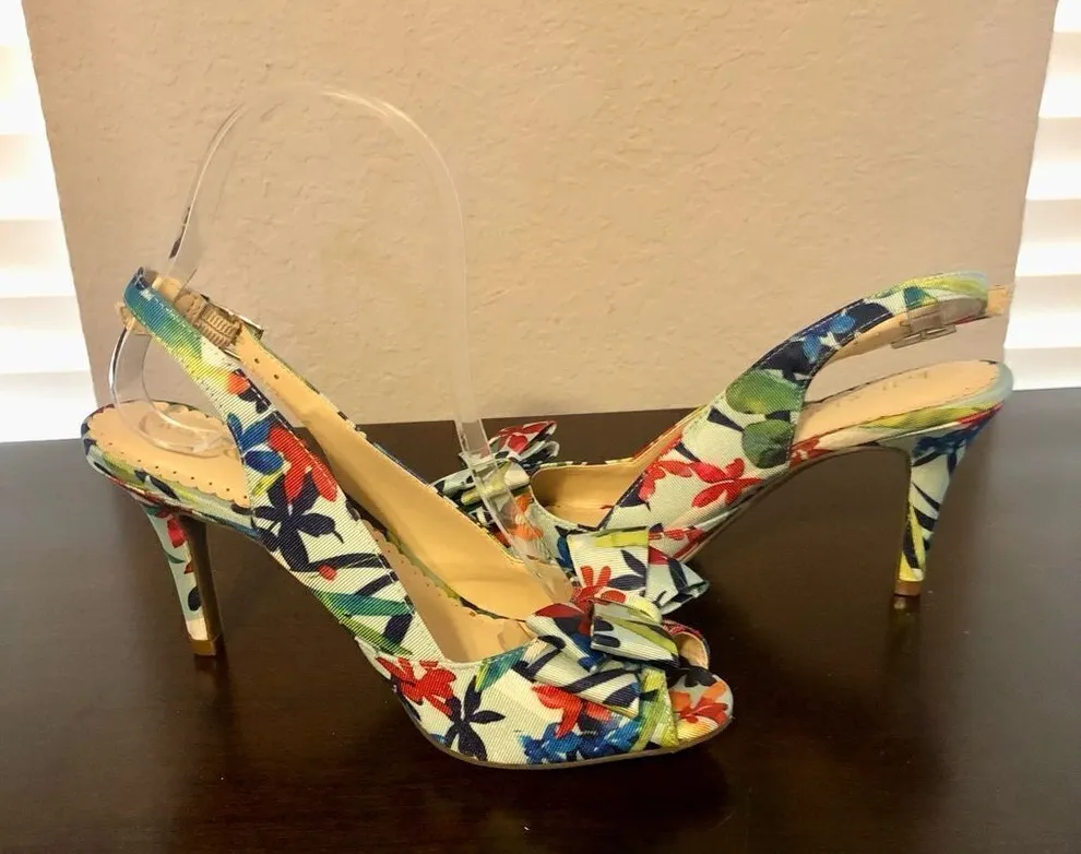 Kelly & Katie Floral Heels Open Toe with Bow Size 6 - $30 - From Carlie