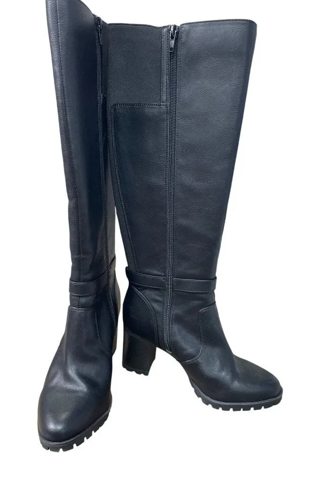 These Kelly & Katie riding equestrian Knee high boots offer a sophisticated look with synthetic leather and robust construction. A practical choice for equestrian activities or stylish everyday wear. Unused new condition with no defects noted. SKU 8976 • Zipper closure for easy wear • Decorative side buckle detail • Lugged outsole for enhanced grip • Block heel for added stability • Synthetic material offers easy maintenance Heel height = 2.5 inches Features: • casual formal wear • All Season • Smooth • China Size: Womens 7M Condition: Pre-Owned Like New Unused new condition with no defects. Although we clean our items additional cleaning may be needed such as spot treatments, etc.