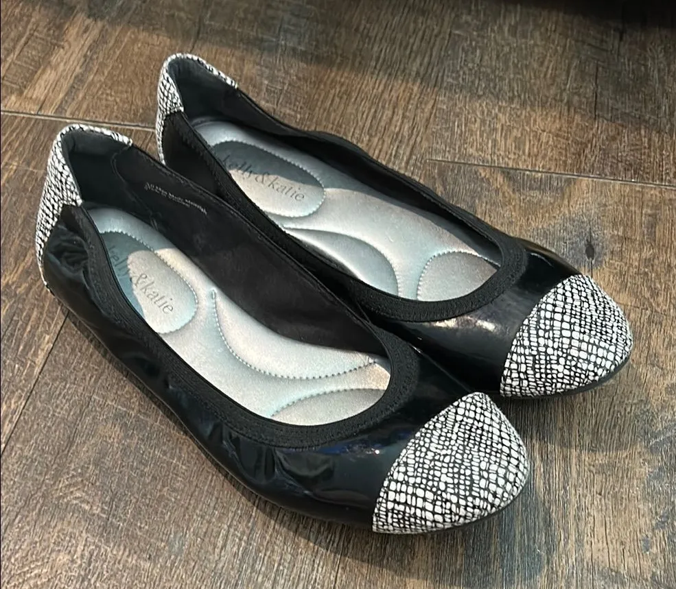 Kelly & Katie Weslyne Black with Black‎ &White Toe/Heel Ballet Flat Shoes 9 - $26 - From Michelle