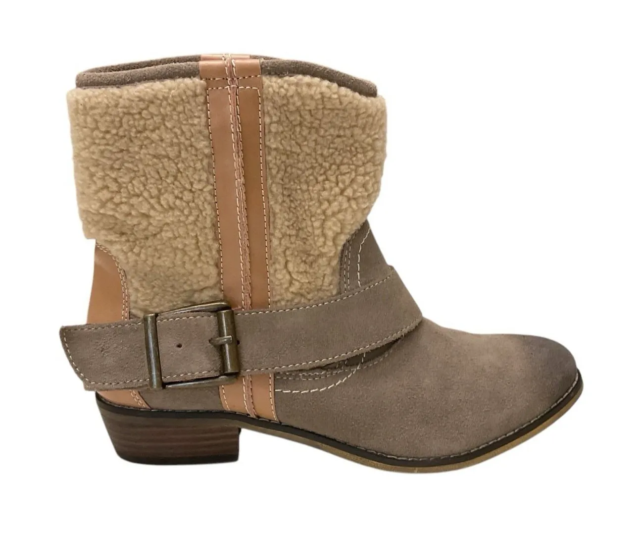 Step into effortless style with these Kelsi Dagger ankle boots, perfectly blending a western vibe with a bohemian twist. Crafted from khaki suede and lined with cozy sheepskin, these boots provide both comfort and chic aesthetics for your everyday adventures. The fleece fabric ensures warmth during the cooler seasons, making them ideal for fall, spring, and winter. Designed with a delicate almond toe and finished with a sturdy block heel, these boots offer both stability and a touch of sophistication. The buckle closure adds a practical and fashionable detail, while the solid pattern and faux suede outsole material provide a versatile look that can transition from a casual day out to an evening in the city.