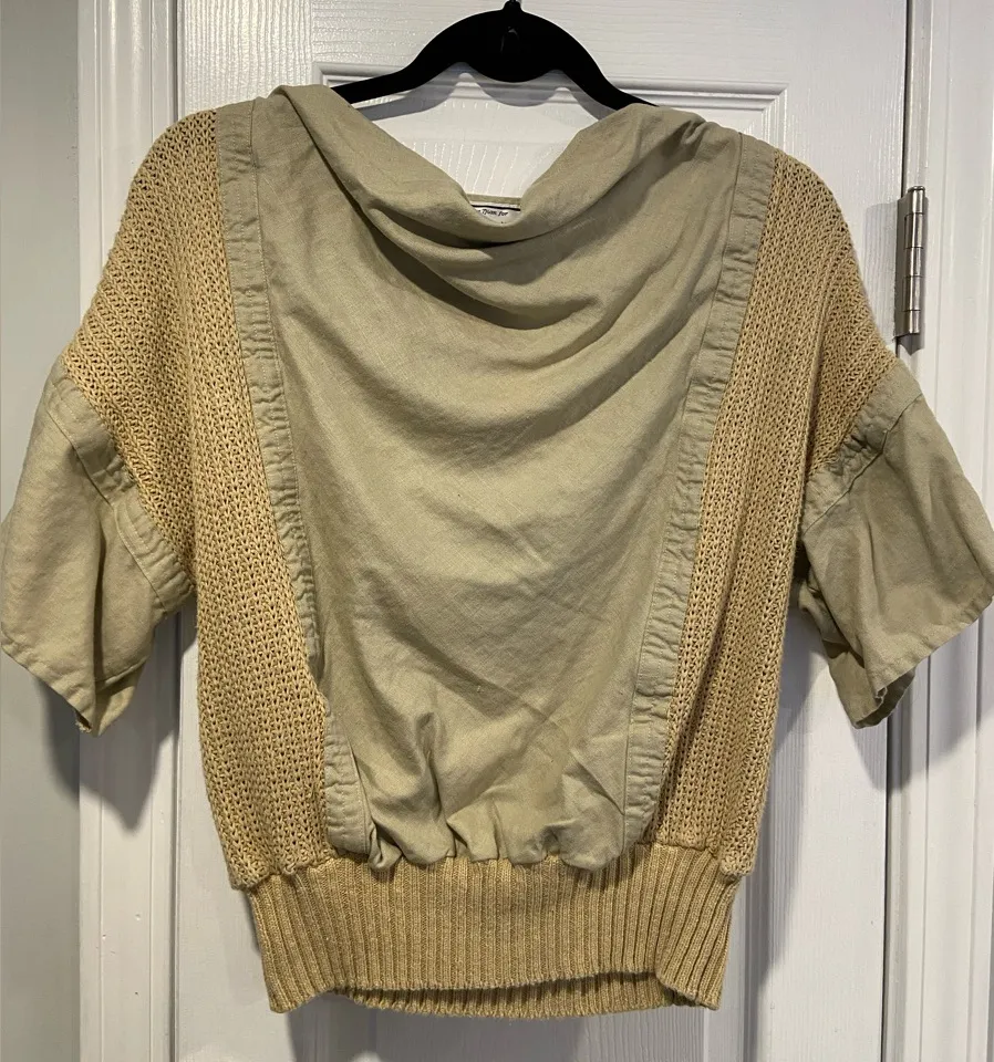 Kenar Size M Hooded Mixed Media Top Cropped Ribbed Hem Linen Cotton Knit Y2K Tan Size M - $30 - From Lindsey