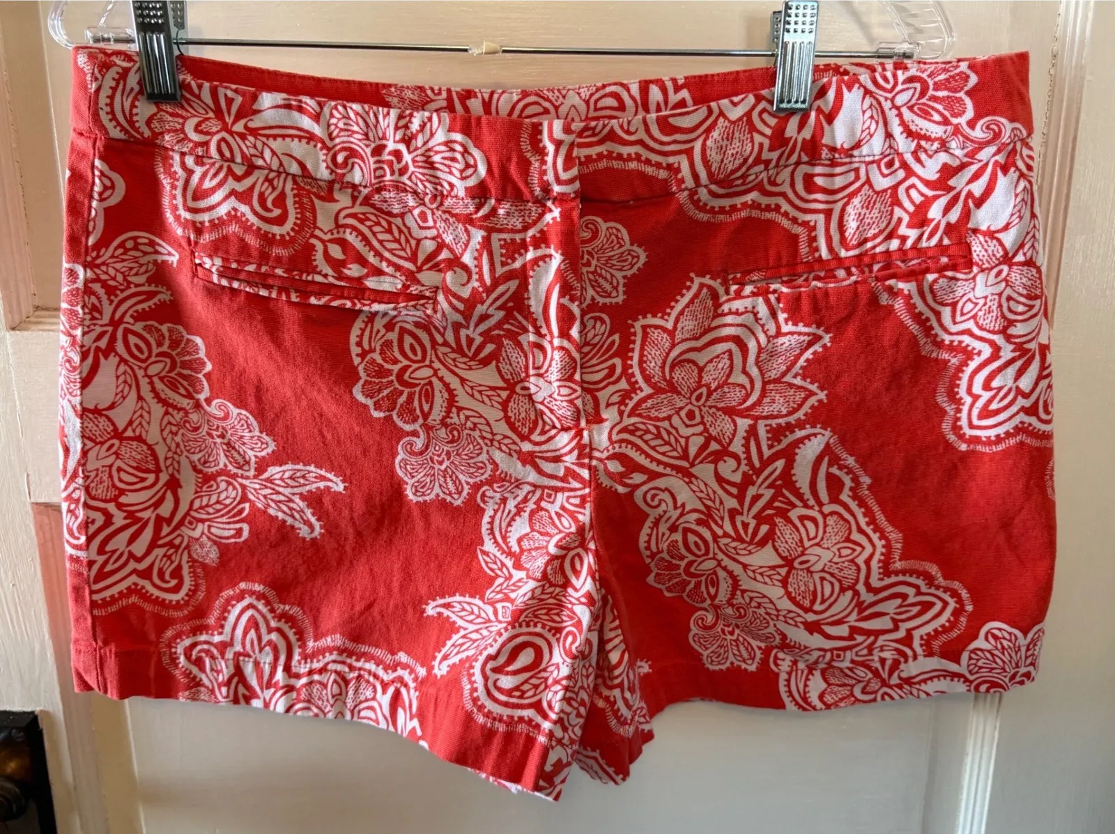 Brighten your wardrobe with these charming KENAR shorts, showcasing a vibrant orange/coral and white floral pattern that exudes playful energy. Designed for comfort and style, these shorts feature a classic cut with functional pockets, perfect for your active lifestyle. Imagine yourself strolling through a summer market or enjoying a casual brunch with friends, feeling effortlessly chic and comfortable in these eye-catching shorts. Pre-owned in good condition Keywords: kenar shorts, floral shorts, summer shorts, casual shorts, women's shorts, patterned shorts, tailored shorts, daytime shorts, vacation shorts, resort wear, bright shorts, comfortable shorts