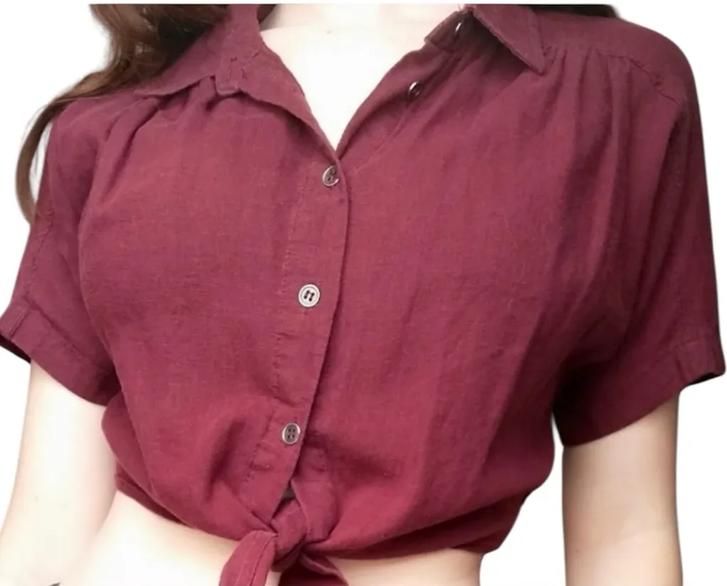 Pre-loved good condition Woman’s Kendall & Kylie short sleeve button-down cropped tie-front blouse... Show more