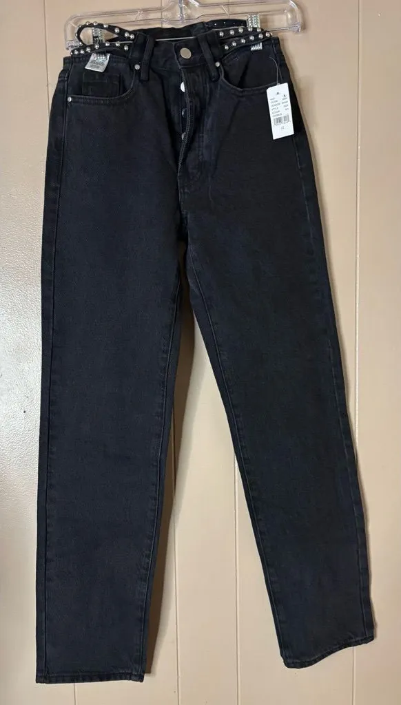Crafted for both style and comfort, these Kendall & Kylie Eco Black Strappy Stud Dad Jeans offer a t... Show more