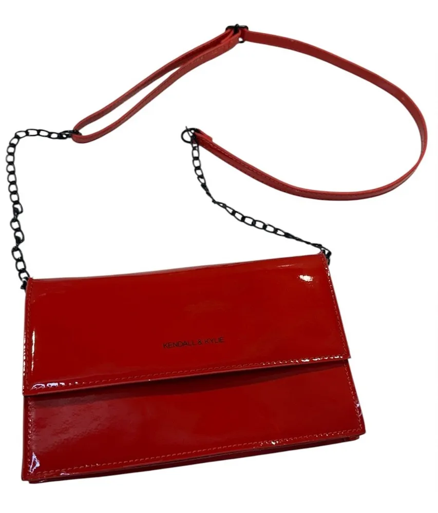 The Kendall & Kylie crossbody bag showcases a vibrant red patent leather with a high-shine finish, p... Show more