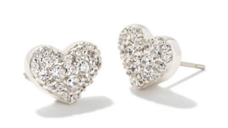 They feature a heart shape covered in sparkling white crystals with a post-back closure. These elega... Show more
