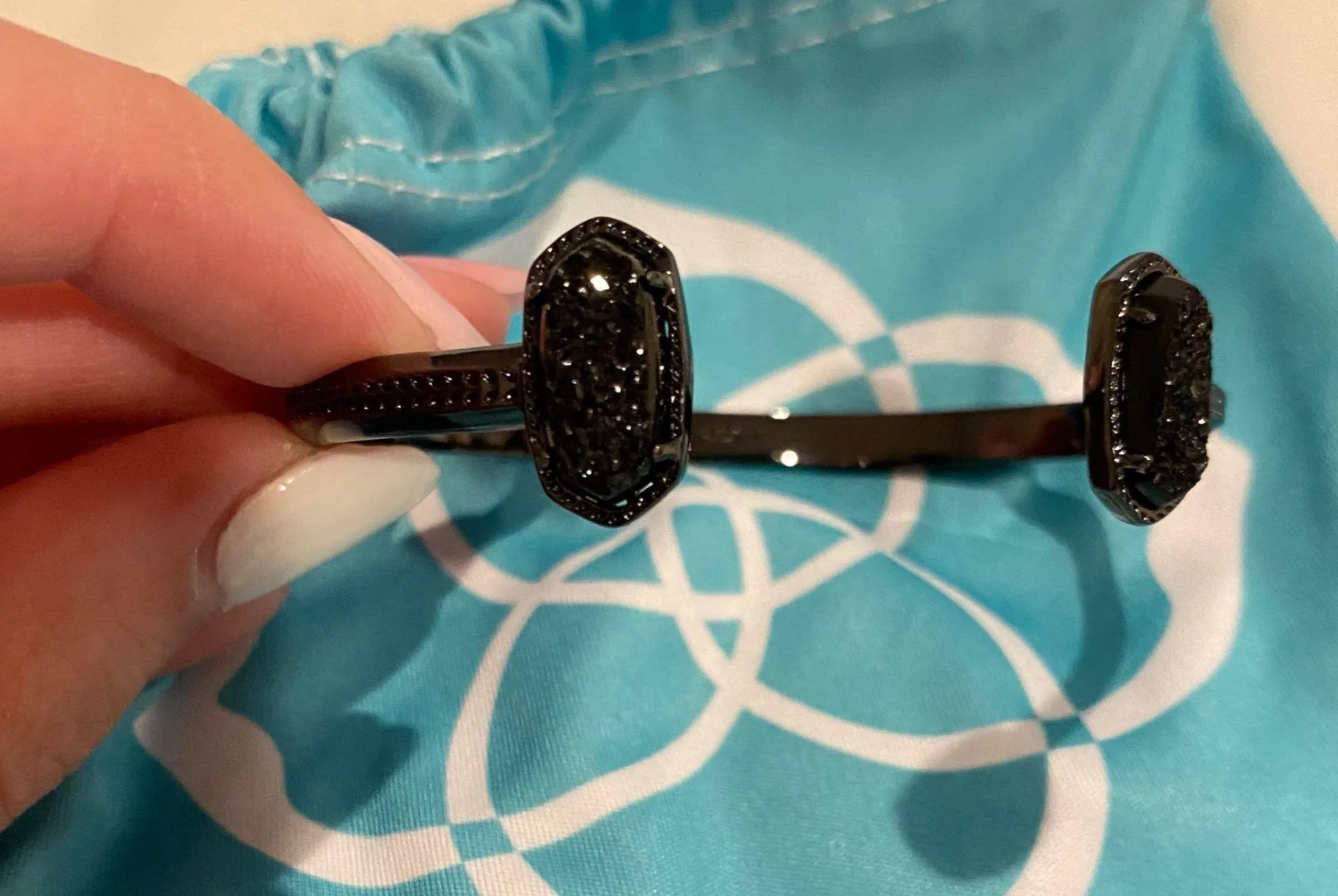 Customized cuff bracelet with gunmetal finish and black drusy stone. Worn a few times, like new