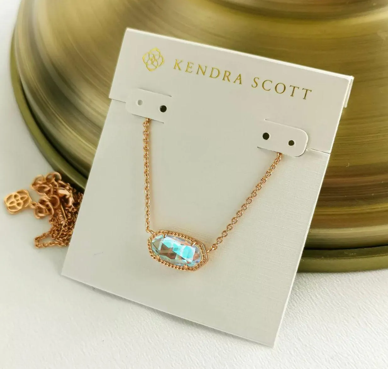Kendra Scott Elisa Dichroic Glass Pendant Necklace Rose Gold