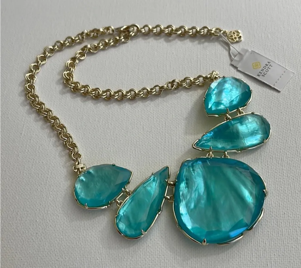 Kendra Scott Kenzie Statement Necklace in Aqua Illusion Gold 443 New with tags! Aqua and gold b... Show more