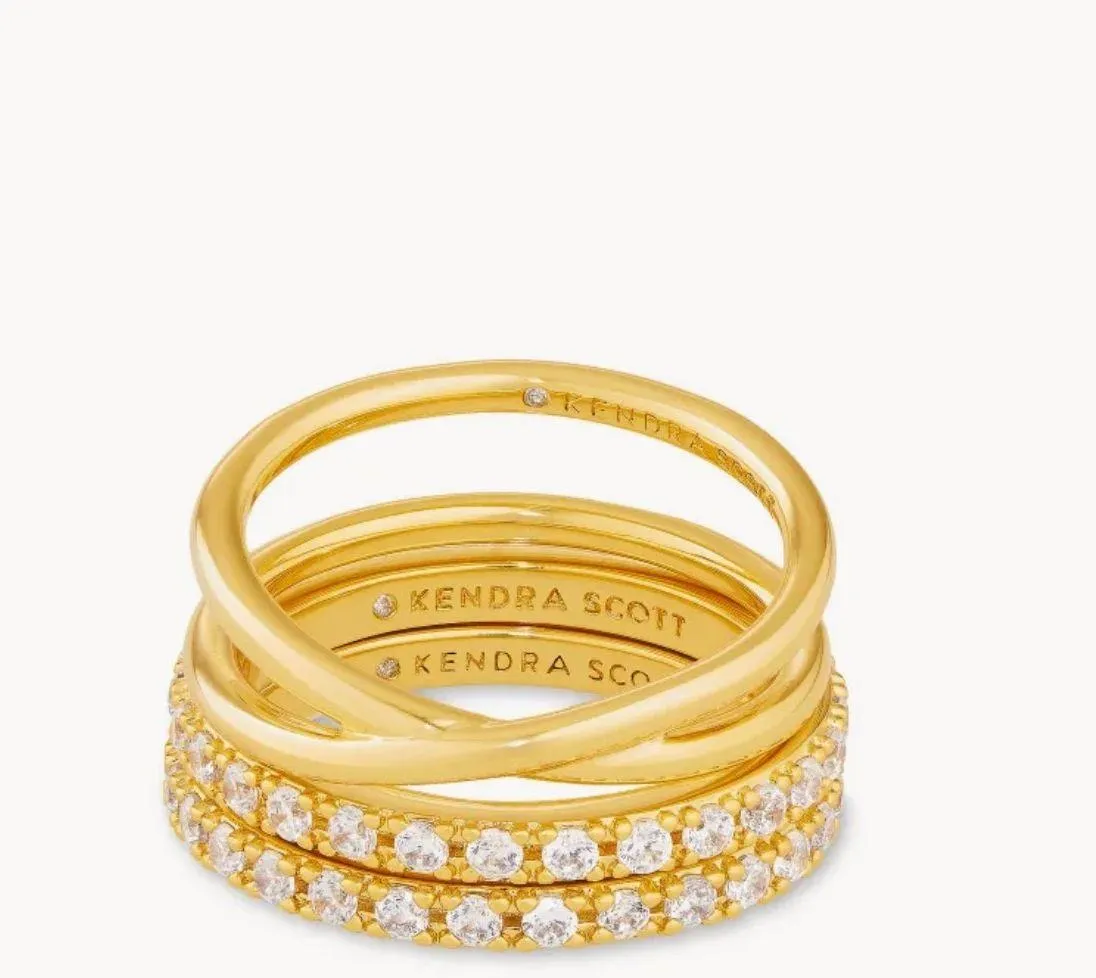 Gold and white crystal 3 ring stack Brand new w tags Size 10