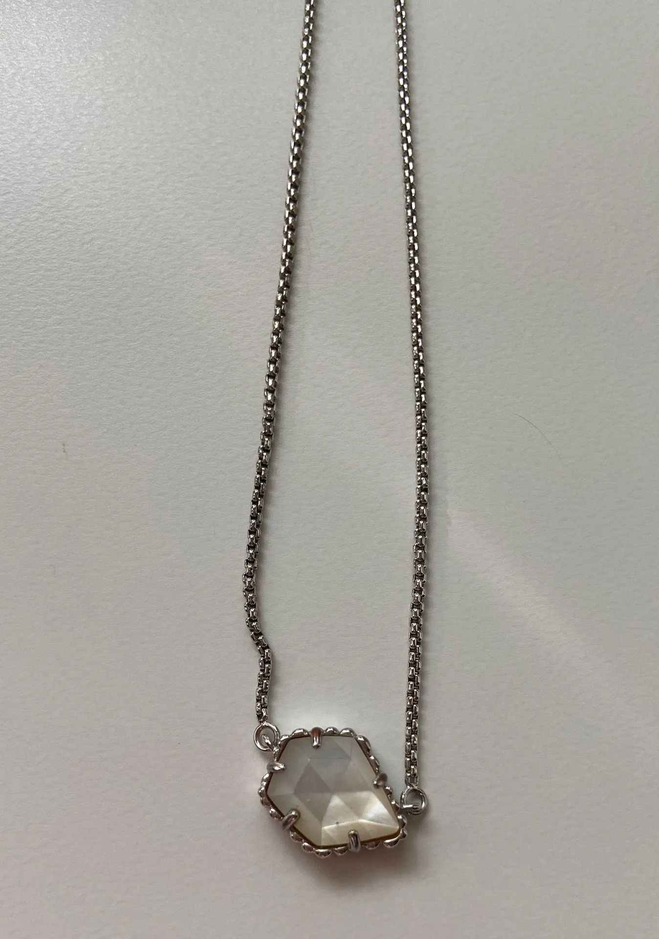 Silver kendra scott necklace, the stone is a white ish gray color, no tarnishing, worn a few times