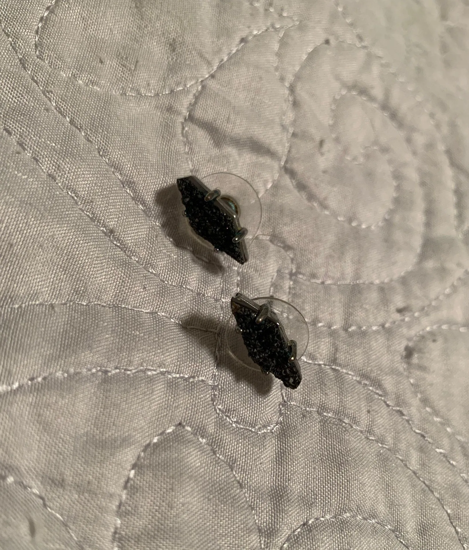 Diamond shaped black stone Kendra Scott stud earrings! Silver metal. Worn a couple of times, good co... Show more