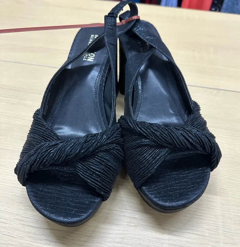 KENNETH COLE REACTION RYLEE PLATFORM METALLIC SANDALS IN BLACK SIZE 9.5 NWOT