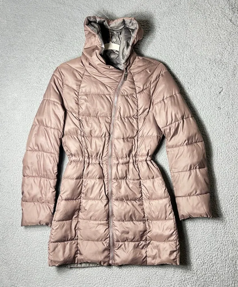 Kenneth Cole Reaction Coat Womens XS Dusty Mauve Hooded Puffer Jacket Coat READ **Seam has come loos... Show more