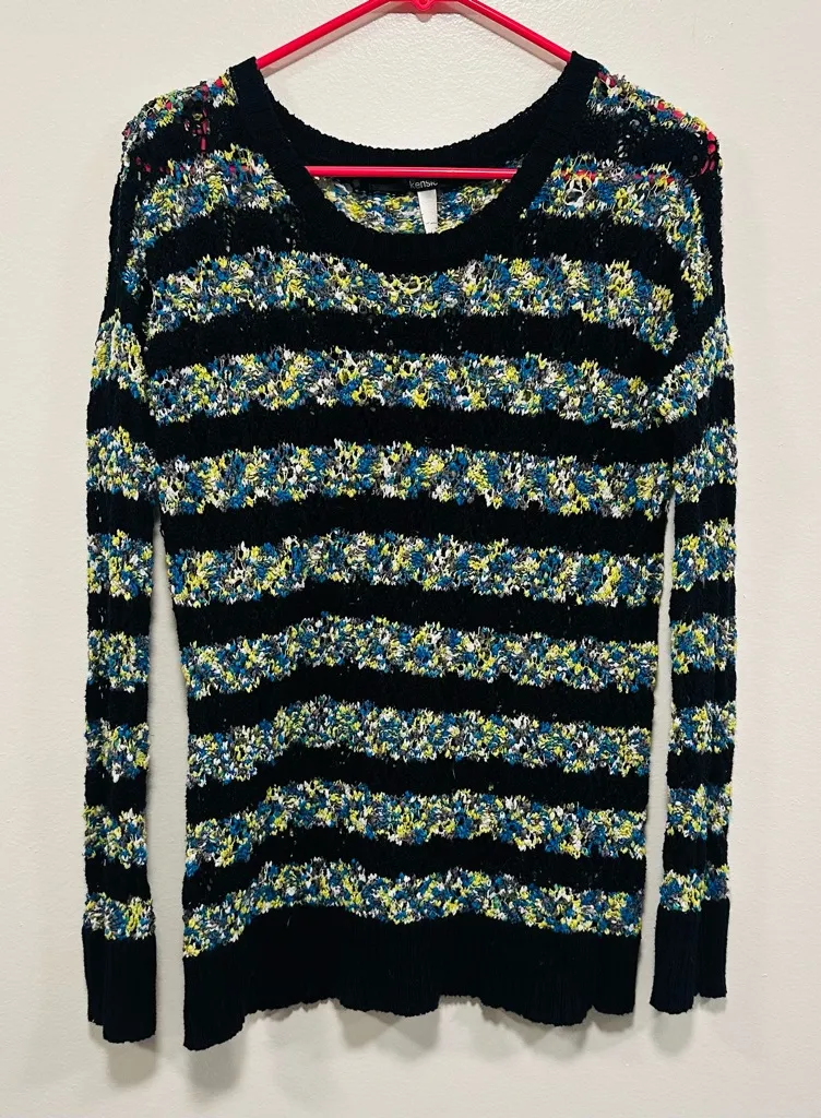 Chic knit sweater with vibrant multicolor pattern. Ideal for layering. Y2K knit boho bohemian vibe