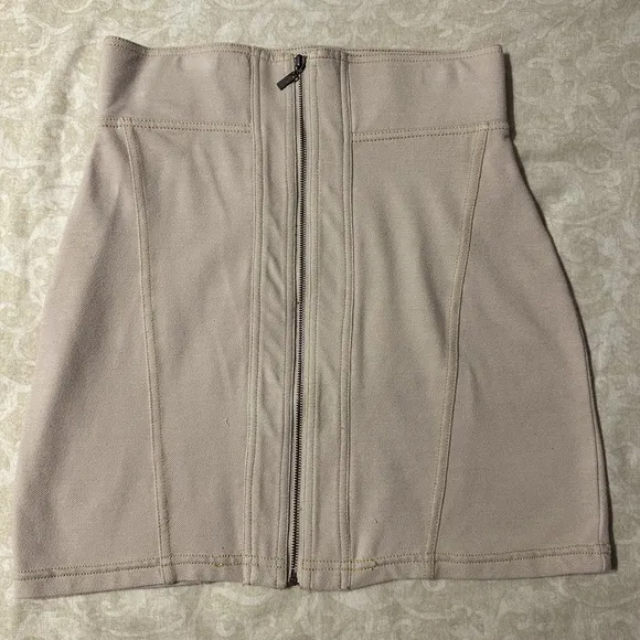 This Kensie Girl skirt in a chic tan hue features a mini length and a sleek pencil style, perfect for casual outings or work. Its high-waisted design and vertical seam details create a flattering, fitted silhouette. The minimalist look is enhanced by a full-length front zipper, adding a modern touch to this versatile piece.