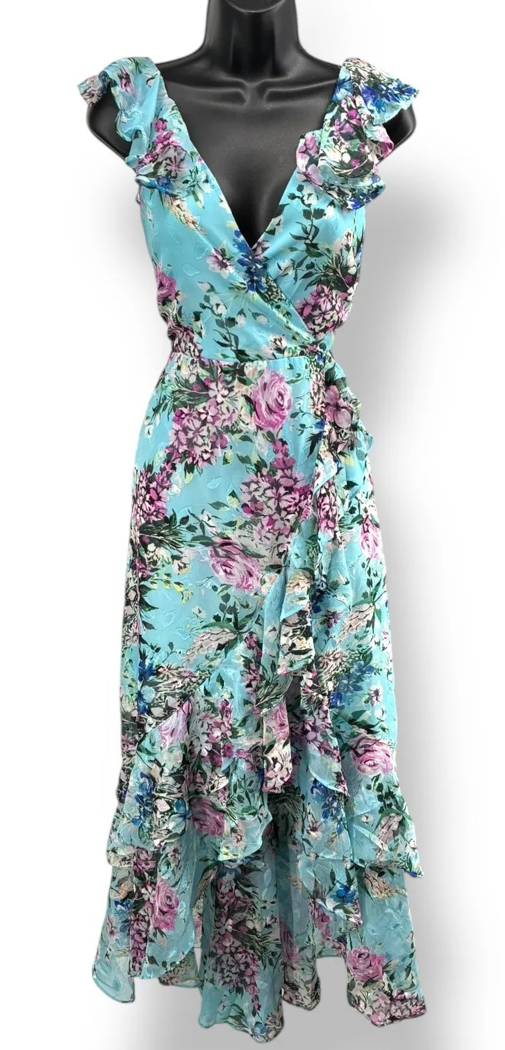 Kensie Dresses NWT floral maxi dress in a beautiful aqua/blue multicolor print. Faux wrap V-neck wit... Show more