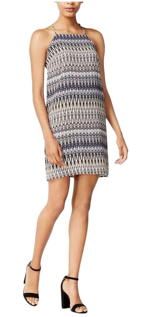 Kensie Women's Sound Waves Printed Cami Dress Halter Neck Shift Chiffon Size M Chic and stylish s... Show more