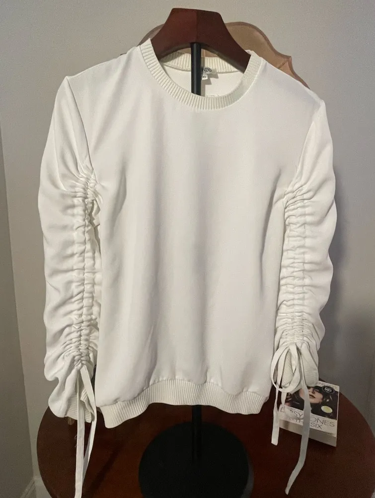 Iām obsessed!!! This is a Kenzo Crepe Knot Ruched Sleeve top in white. This is such a cool top! Feat... Show more