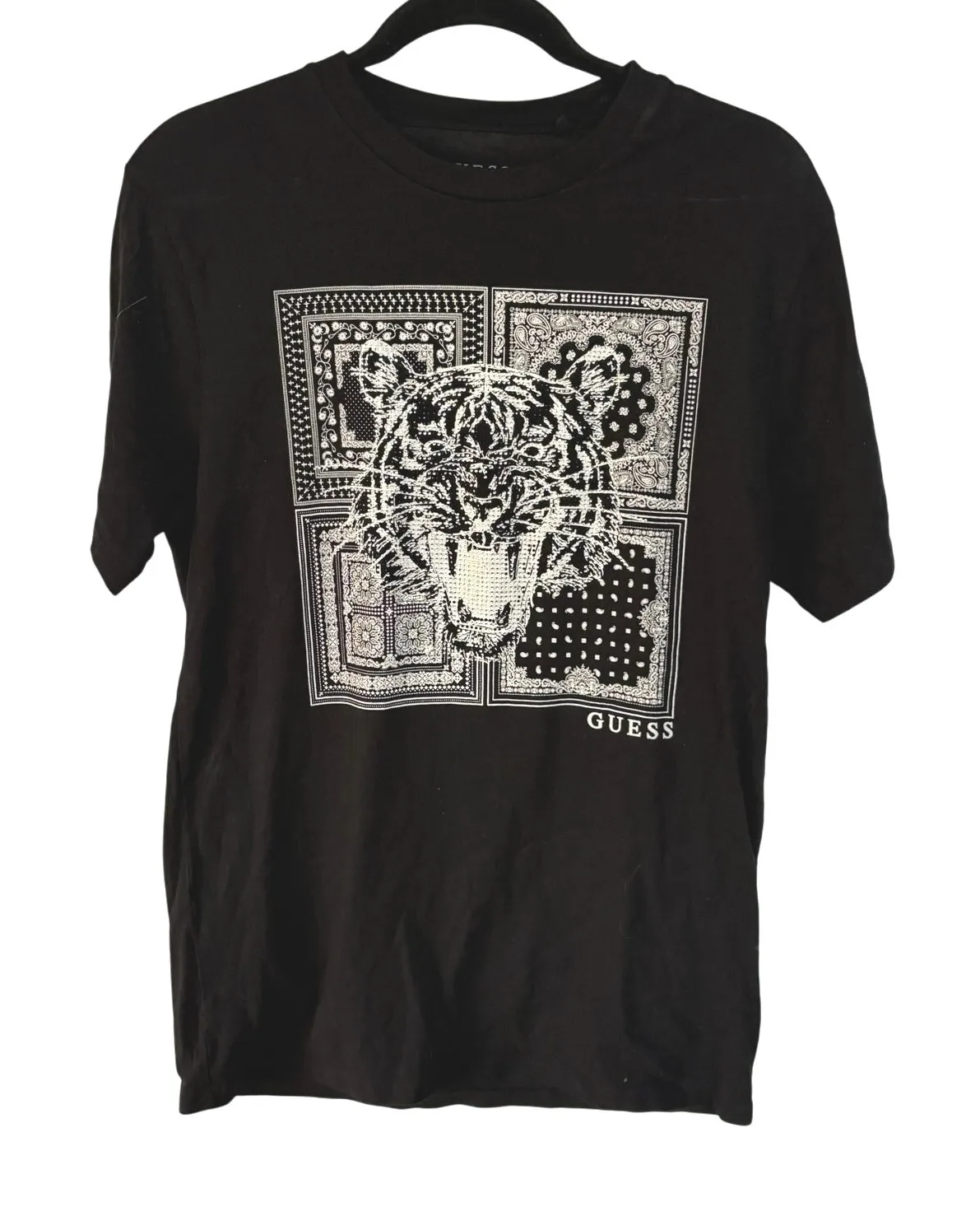 Guess Black Rhinestone Bedazzled Tiger McBling Graphic Rap Baby Tee T-Shirt Cool bling sparkly graph... Show more