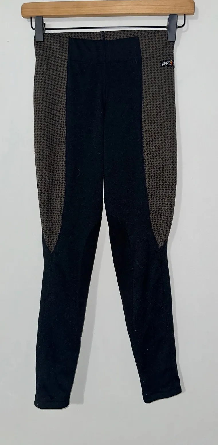 Color: Black Keywords: Kerrits riding pants, equestrian pants, knee patch pants, performance riding apparel, houndstooth pants, womens riding pants, black riding pants, size XS, equestrian apparel, riding leggings, athletic riding pants, horse riding, equestrian fashion All pre owned clothing will be cleaned according to care instructions with unscented detergent. All items stored in polybags Comes from a smoke free home