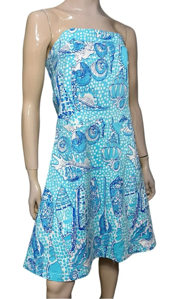 Key West NWT Women’s Size 8 Blue Turquoise White Shell Mosaic Tropical Lucky Strapless Dress. Full s... Show more