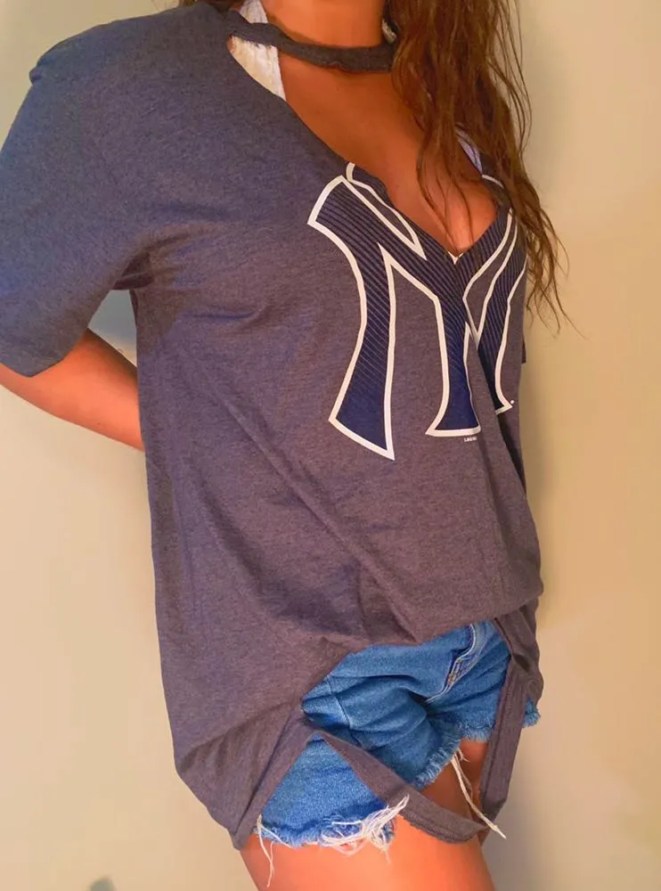 Keyhole Distressed Yankees Tee Size L - $20 (33% Off Retail) - From Cici