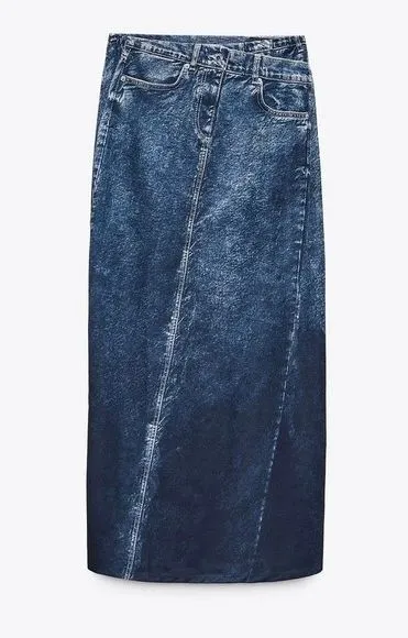 ZARA Denim Look midi skirt Elastic waistband Asymmetrical Denim print High waist Blue Size M New... Show more