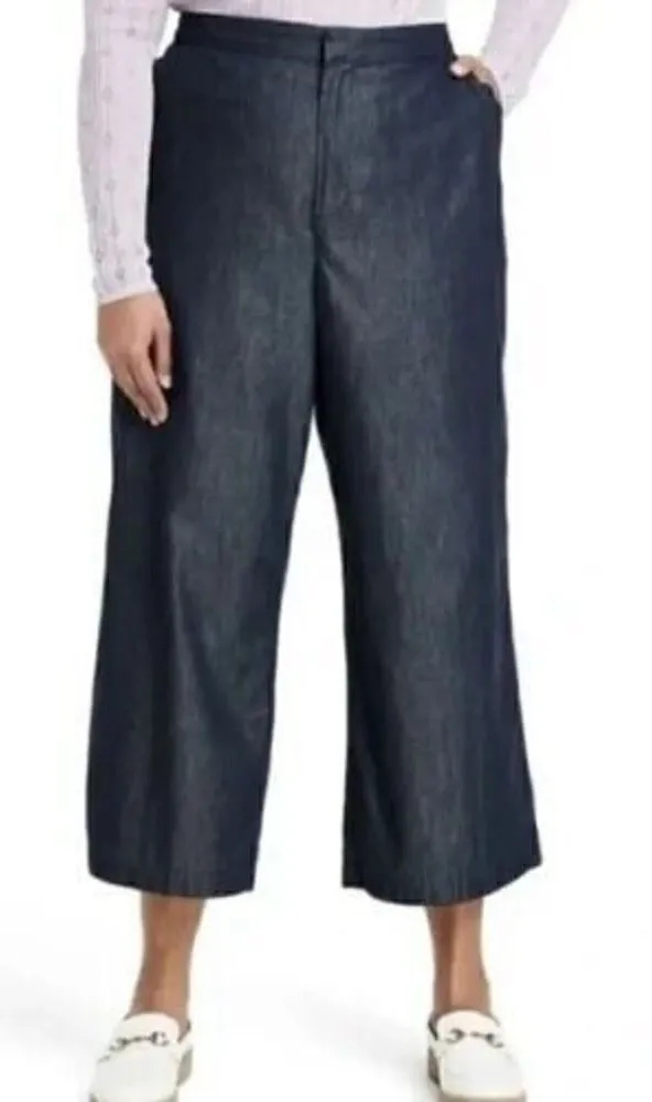 Kika Vargas Indigo Wide Leg Cropped Pants with Scalloped Pocket Size 28W/30W Blue - $9 New With Tags - From Lynne