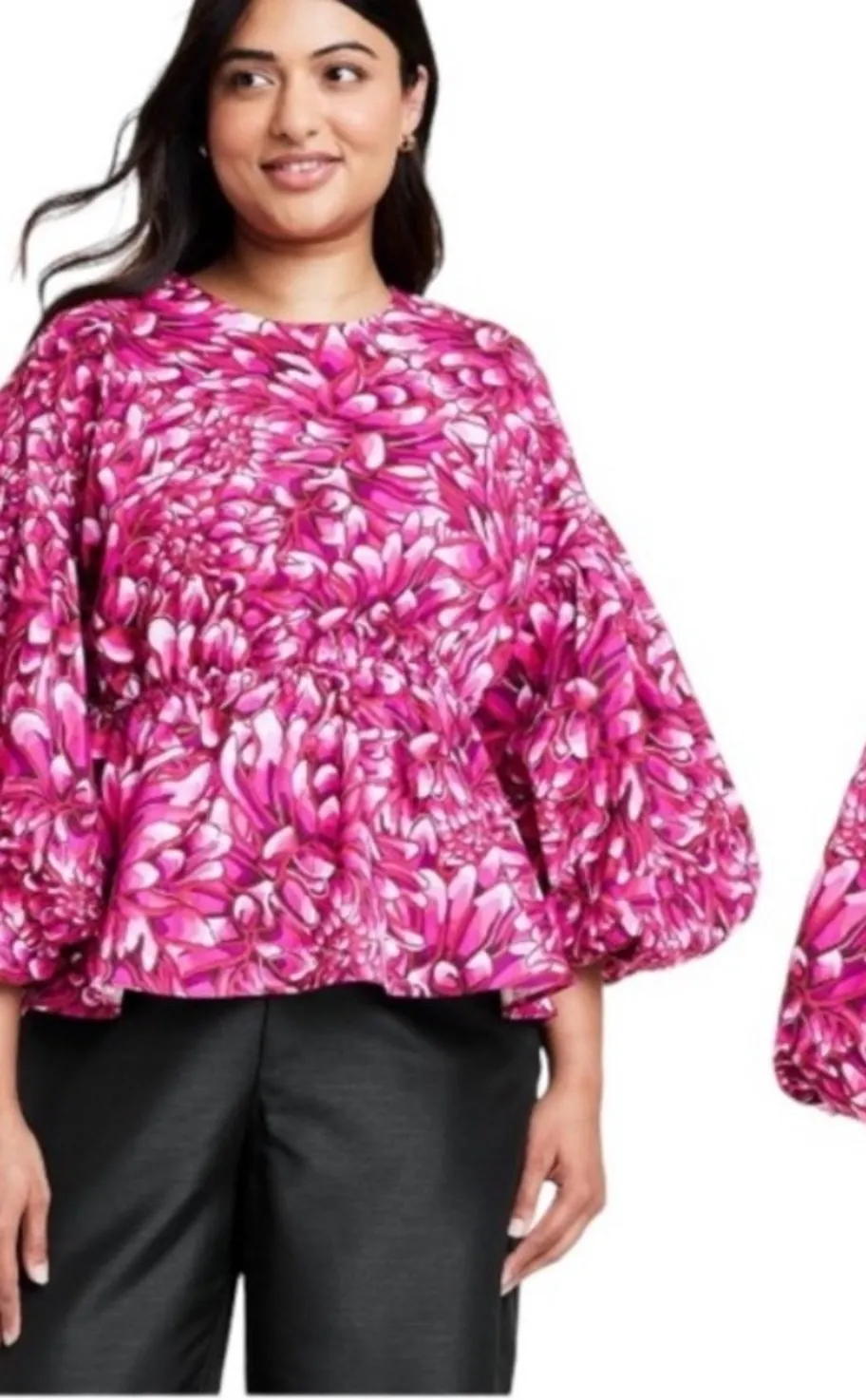 Introducing Kika Vargas' X Target Pink Mum Floral Extreme Puff Sleeve Back Scallop Top Blouse that i... Show more