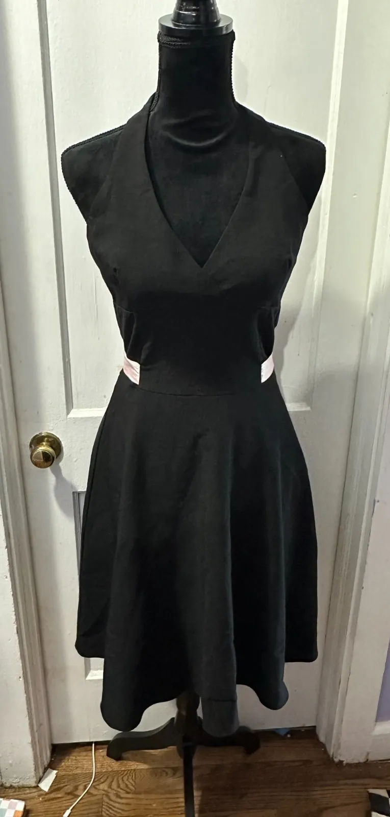The Kiki USA Black Halter Dress with Pink Tie in size L is a stylish and elegant choice for parties... Show more