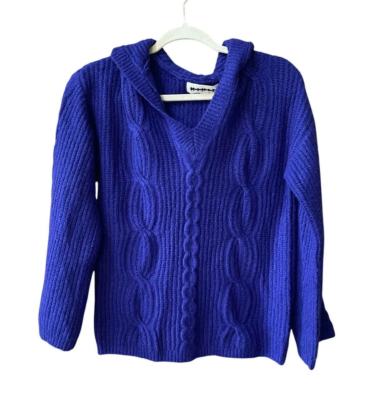 Excellent condition womens size Small purple cable knit style sweater with hood made from a soft and... Show more