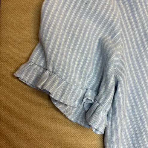 Size: S/M. Comfortable blue striped pajama set with ruffled edges. Perfect for lounging. Shorts hav... Show more
