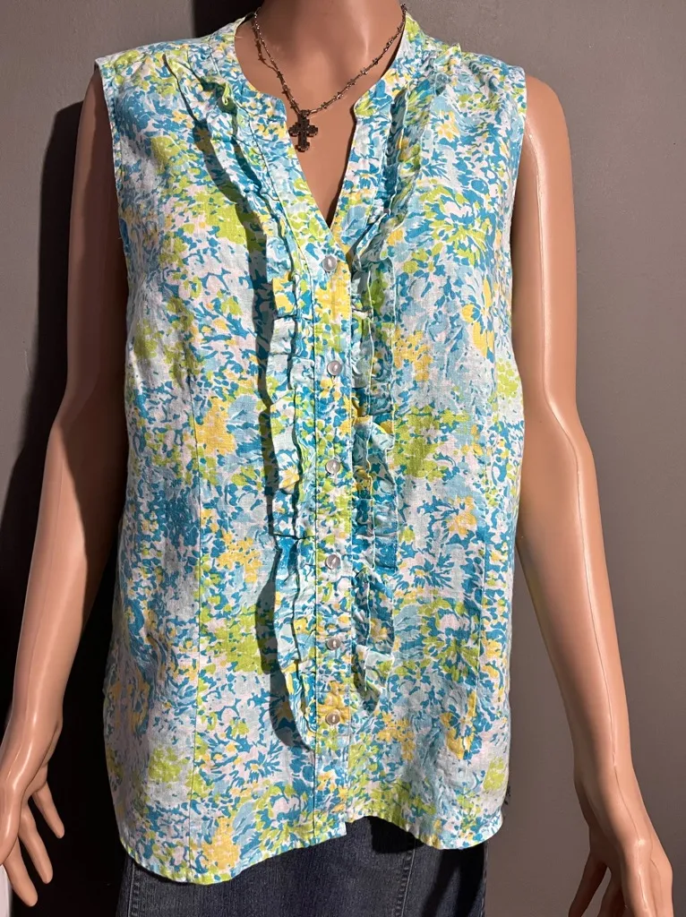 Kim Rogers 100% Linen Size XL Great Condition Women's Sleeveless Floral Top - Elevate your wardrobe... Show more