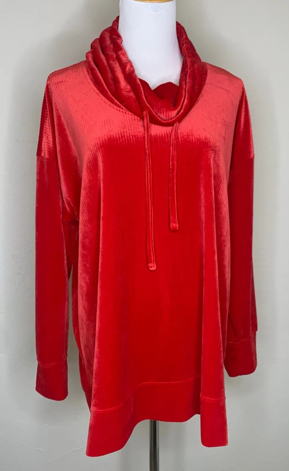 Kim Rogers Red Ribbed Velour Sweatshirt High Neck Sz XL Petite - $25 - From Kayla