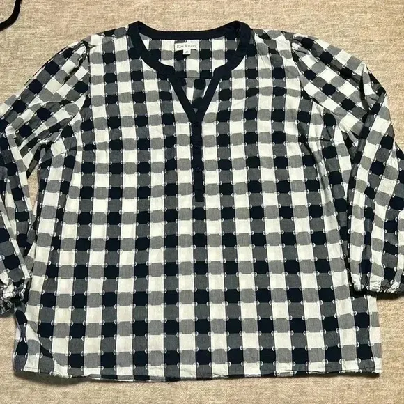 Women's 2X Karen Rogers navy blue white minky dot top v neck - $8 - From olivia
