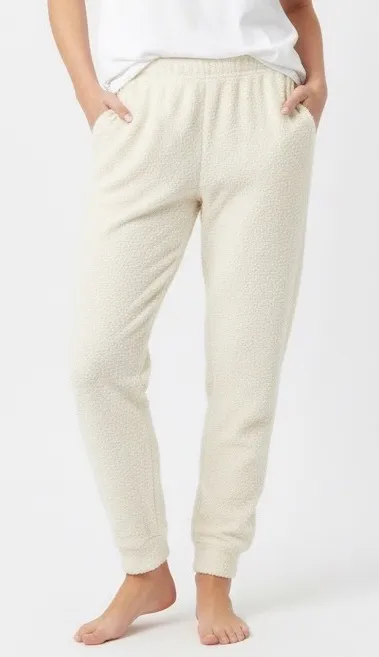 KIMBERLY plush fuzzy jogger pants in a cozy cream color. These comfortable pants feature a relaxed f... Show more