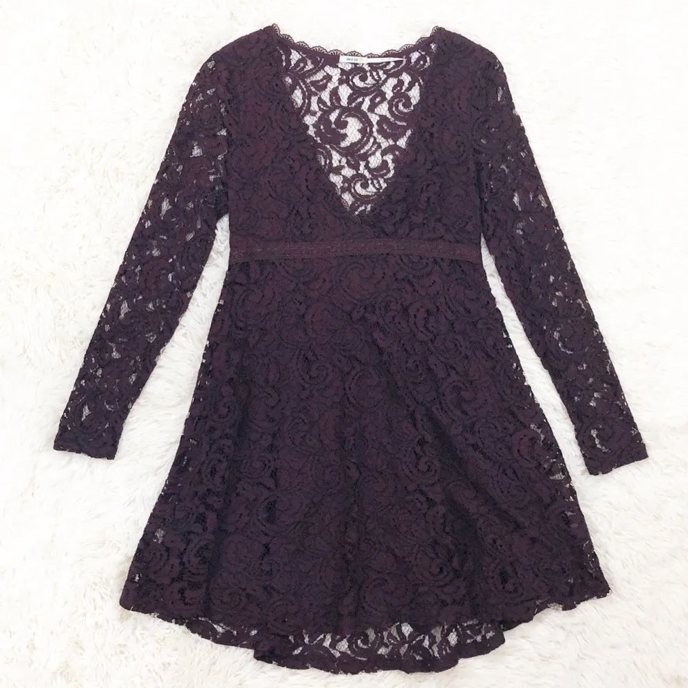 Super cute pre-owned Kimchi Blue Maroon Red Lace Long Sleeve Fit And Flare Empire Waist Dress, Size... Show more