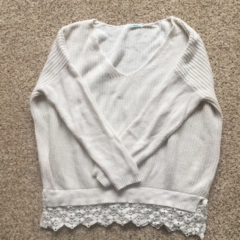 Extra small cream knit sweater from kimchi blue. Size small with crochet fringe on bottom. Worn a co... Show more