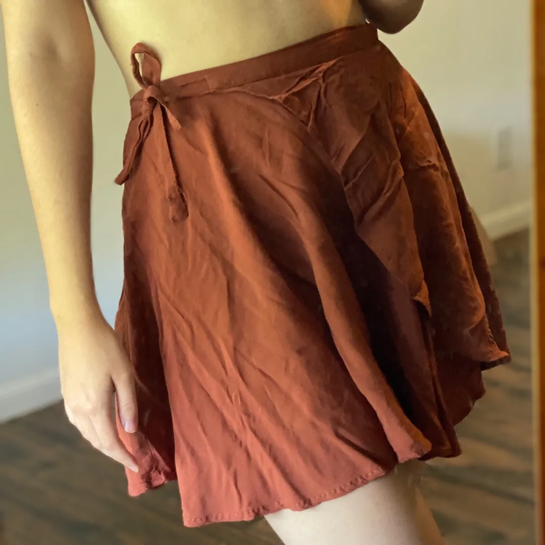 Burnt orange mini wrap skirt - Super flowy and airy 🌿 Perfect for summer, or fall over a pair of le... Show more