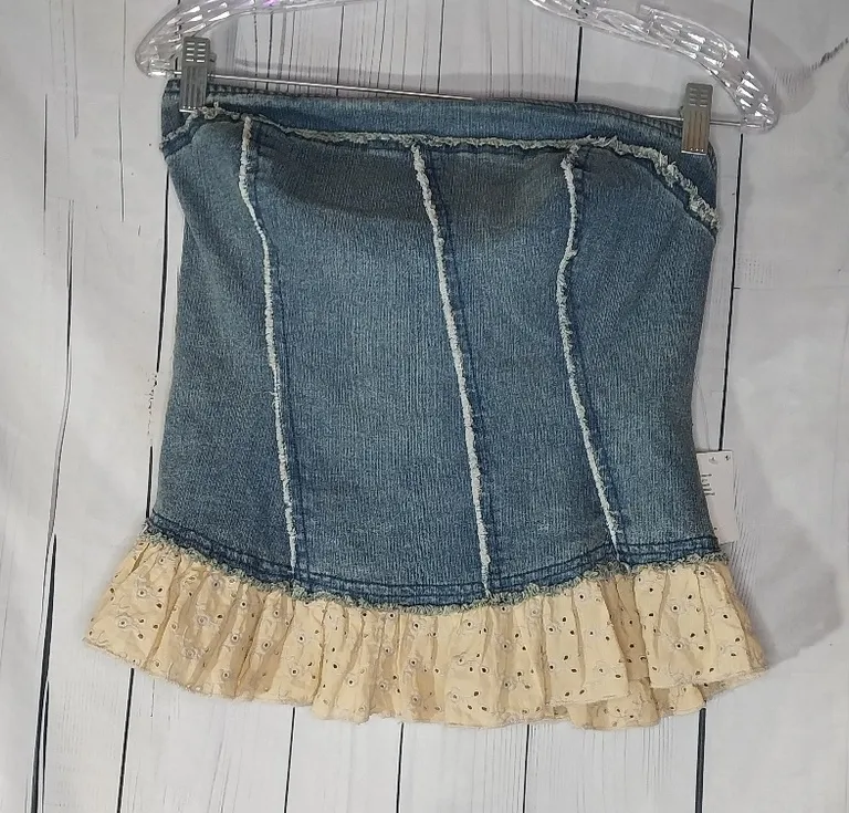 Kimchi Blur Urban Outfitters Denim And Lace Tube Top Size L NWT Pit to pit 16 1/2 length 16 79% cott... Show more