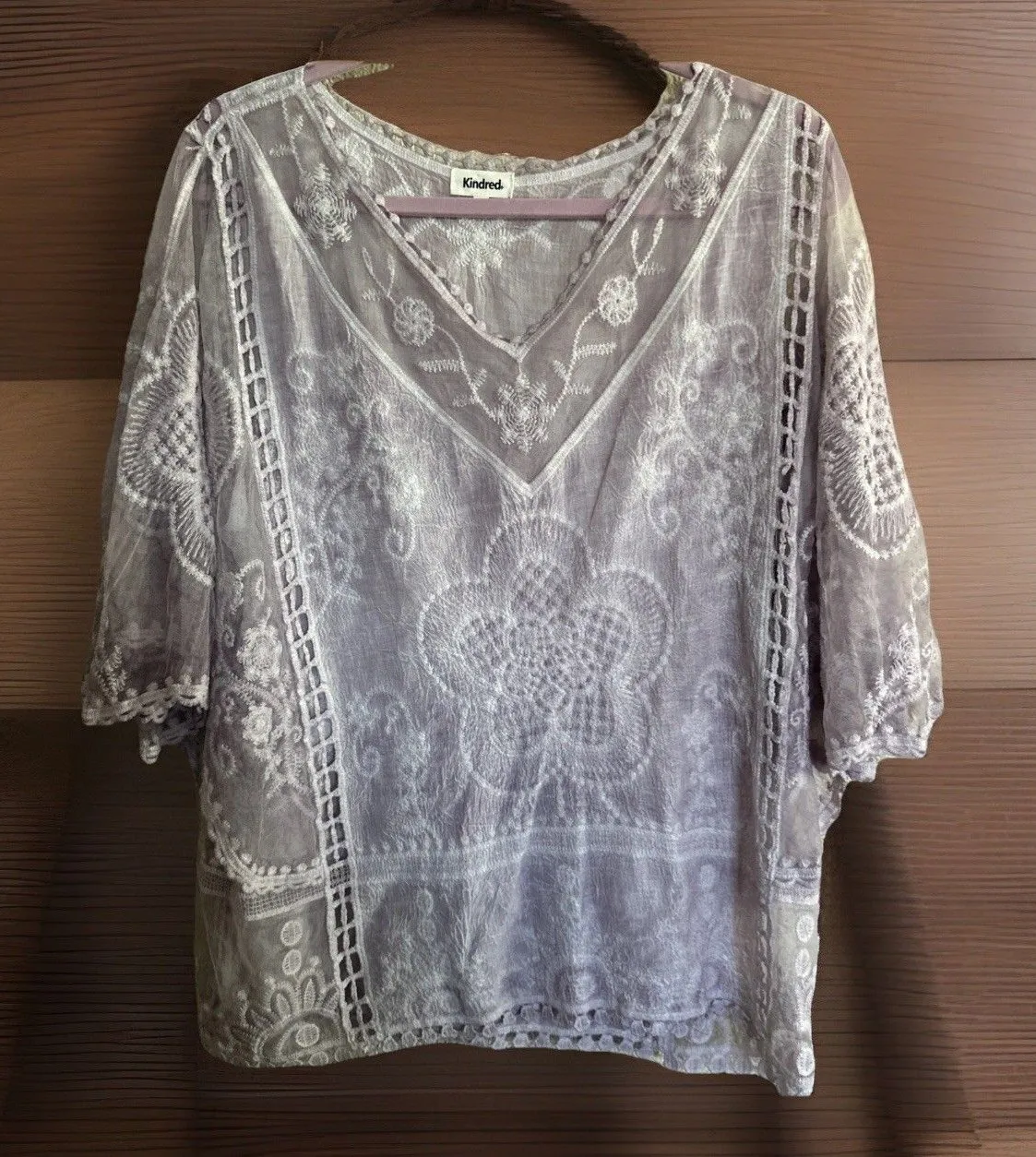 Kindred Women Top Fairy Boho Y2K Blouse Flare Sleeve‎ Crochet Lace Floral Medium Purple - $23 - From Autumn
