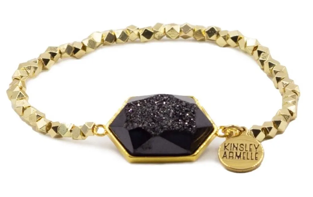 New Kinsley Armelle Andrea Collection Raven Quartz Bracelet*Gold This is a gorgeous Raven Quartz bracelet set in 18K Gold ionized over stainless. With a velvet dustbag! It is BRAND-NEW for gifting! This is stunning! Accent: Stone (Quartz) Style: Beaded Material: 18K ionized over stainless steel Size: 6.25 - 7.25 Inch Circumference Bead Size: 4mm