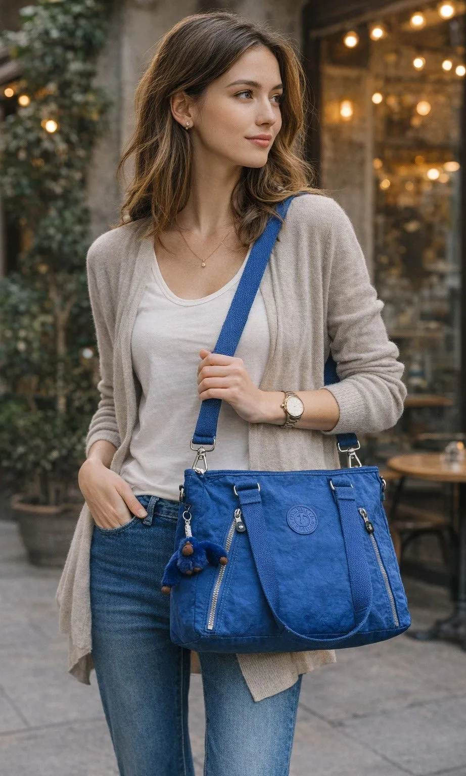 -First photo is AI model to visualize style and fit; see item photos for actual item and condition- Classic Kipling utility in a bright cobalt blue! This versatile Angela Tote Crossbody can be carried as a shoulder tote or worn crossbody thanks to the detachable adjustable strap. Lightweight, durable nylon with multiple zip pockets—perfect for everyday, travel, or work. In good pre owned condition. Please see all photos 10"L double handles Exterior features silver-tone hardware, 2 front zip pockets, Zip closure, double handle Interior features lining, 1 zip pocket, 2 slip pockets and 1 key finder 14"W x 10"H x 5"D Kipling bag, Kipling Angela, Kipling tote, Kipling crossbody, cobalt blue bag, blue nylon purse, travel tote bag, work bag, lightweight handbag, commuter bag, zip pocket purse, monkey keychain bag, adjustable strap, everyday carry, utility tote