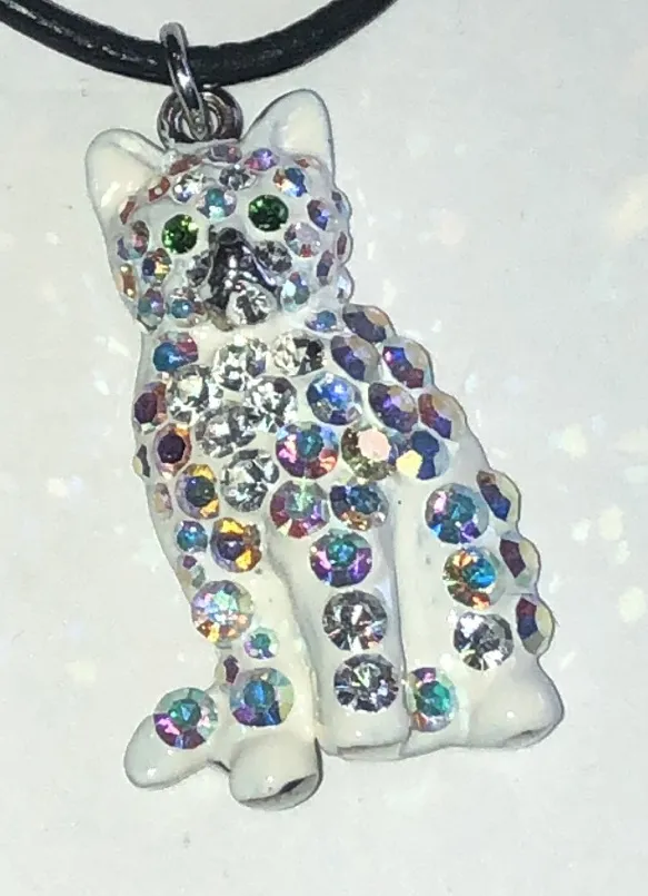 Add a touch of sparkle to your outfit with this dazzling cat pendant necklace. Featuring a multicolo... Show more