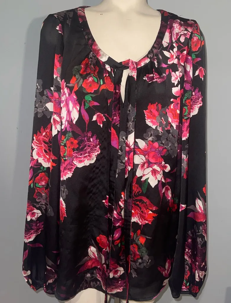 -Beautiful silky floral blouse with slightly puffy sleeves -No rips or stains -From a smoke free home -See photos for measurements ****FAST shipping**** Check out my other listings Bin H