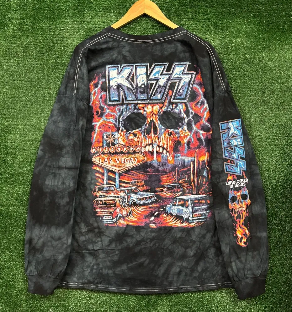 Kiss Landlocked in Vegas Heavy Metal Band TIe-Dye T-Shirt Size 3XL measures 28 inches pit to pit 31 inches long Amazing shirt unique tie dye pattern perfect for fans of the legendary band Kiss New overstock in great condition