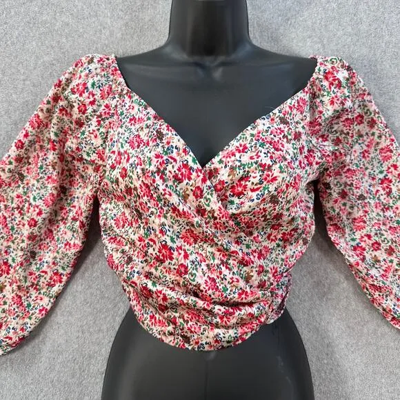 Size: XS Condition: Very Good Pre-Owned Condition, No Rips,Stains, or Tears.Please see all photos for most accurate representation of condition Color: Pink, White Floral Closure: Tie Pockets: No Material: 100% Polyester